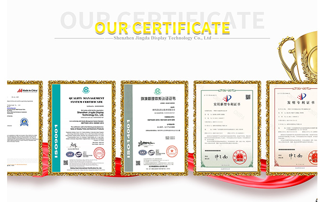 「科学技術を指導し、品質を基礎とする」がJDAの理念です。 Jingda Display (JDA) 会社は持続可能な発展の概念を堅持し、より良い品質と安定したサービスをお客様に提供できます。当社は科学的かつ厳格な品質管理システムを確立しており、IS09001、SO14001、IATF-16949システム認証を取得しています。